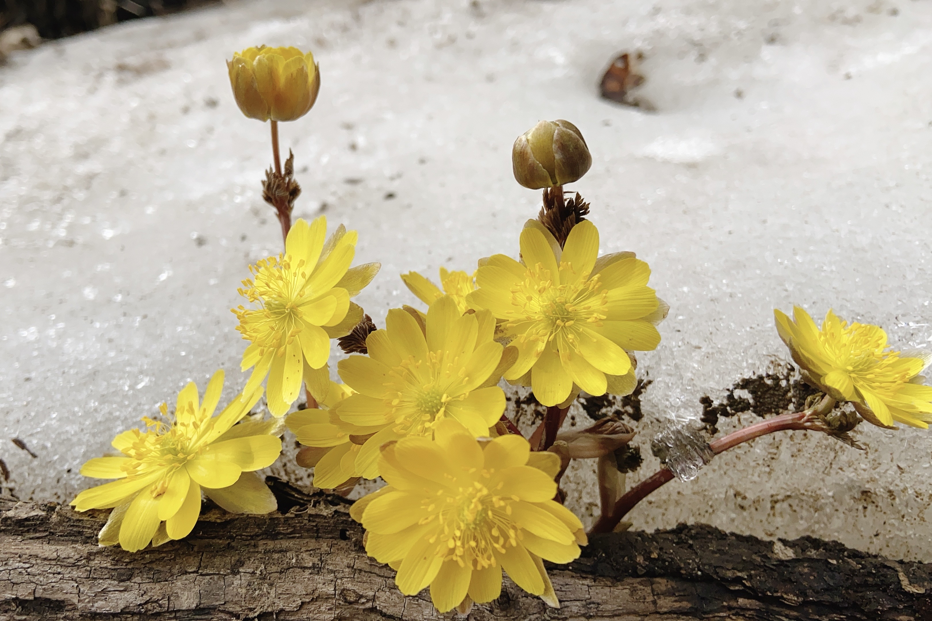 B线磨盘山沟徒步到迎门沟,冰凌花多,原路返回走多远都行,或者也可以在东沟徒步赏花。