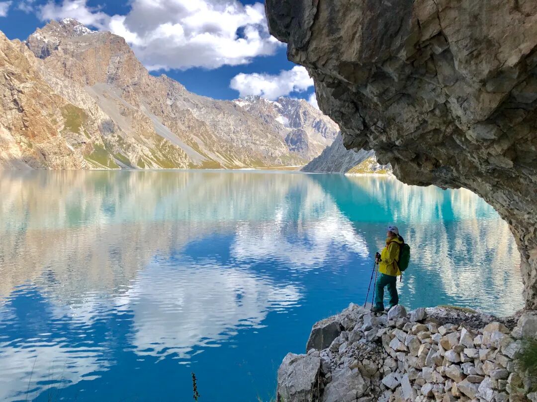 今天早起后沿阿克布拉克河谷开始爬升,这里是深山牧场,零星牛羊点缀在河谷中。一路不断爬升。下午抵达海拔3000米的天堂湖(阿克库勒高山湖),湖边耸立一块凸出的巨石,在这里你将看到世界上最纯正的湖色,犹如一颗蓝宝石嵌于草原、雪山、冰川之上,你可以尽情欣赏湖光山色,也可以在湖畔扎营后来一场日照群山·环湖烧烤趴,与志同道合的好友在此共度一个下午茶的时间。